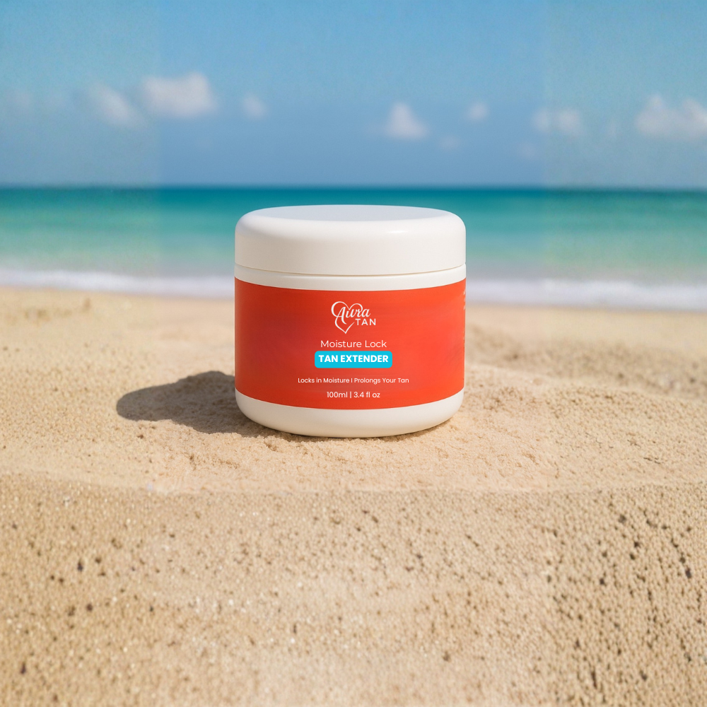 Keep your tan glowing for longer with the Aura Tan Moisture Lock Tan Extender — a deeply hydrating, post-sun lotion designed to nourish, restore, and maintain beautifully bronzed skin.